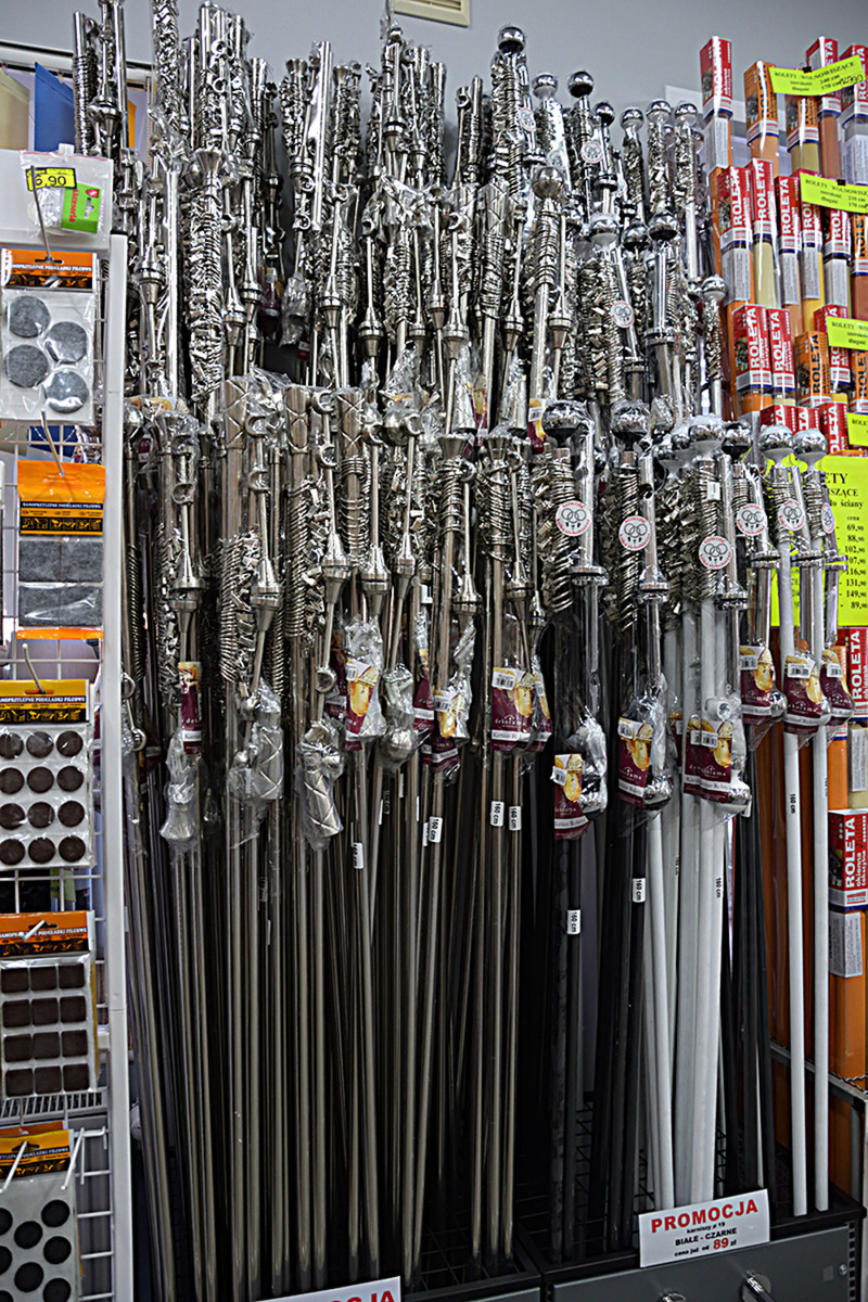 Zazdroski- metalowe pręty: białe i złote w różnych długościach, z możliwością rozsuwania, do przyklejania za pomocą haczyków samoprzylepnych lub do przykręcania.