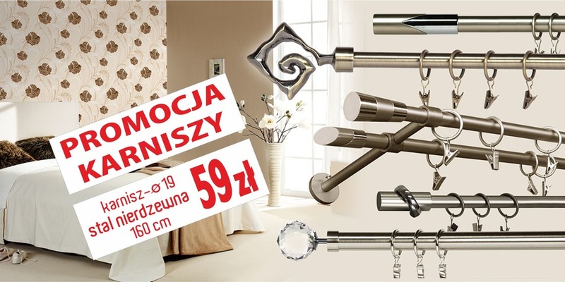 Naszą ofertę charakteryzuje bogata gama kolorów i wzorów.W zależności od potrzeb karnisze mogą być pojedyncze lub podwójne, sufitowe lub ścienne, drewniane lub metalowe. Uzupełnieniem oferty jest szeroki wybór końcówek: klasycznych, ozdobnych z elementami imitującymi kryształy, cyrkonie, które sprawiają że karnisze pasują zarówno do umiarkowanego nowoczesnego stylu jak i tradycyjnego wystroju wnętrza.