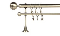 Karnisze metalowe o średnicy 16mm i 25mm stanowią niebanalne połączenie klasycznej formy i nowoczesnego materiału, z którego zostały wykonane. Galwanizowany metal w kolorach antycznego złota i satyny jest odporny na zarysowania i nie zmienia koloru przy użytkowaniu. Dostępne elementy zakończeniowe dają duży wybór aranżacji, własnych pomysłów w dekorowaniu okna. Istnieje możliwość kompletowania karniszy pojedynczych, podwójnych oraz łączenie w dowolne długości i kąty.